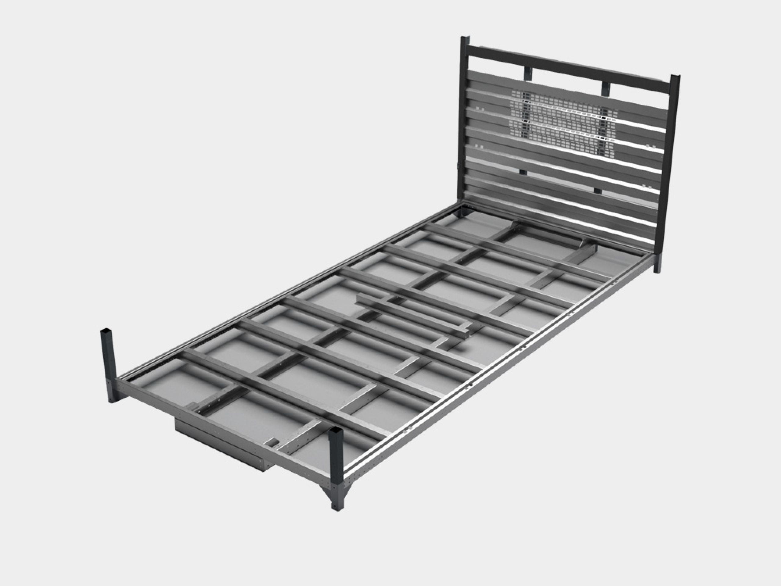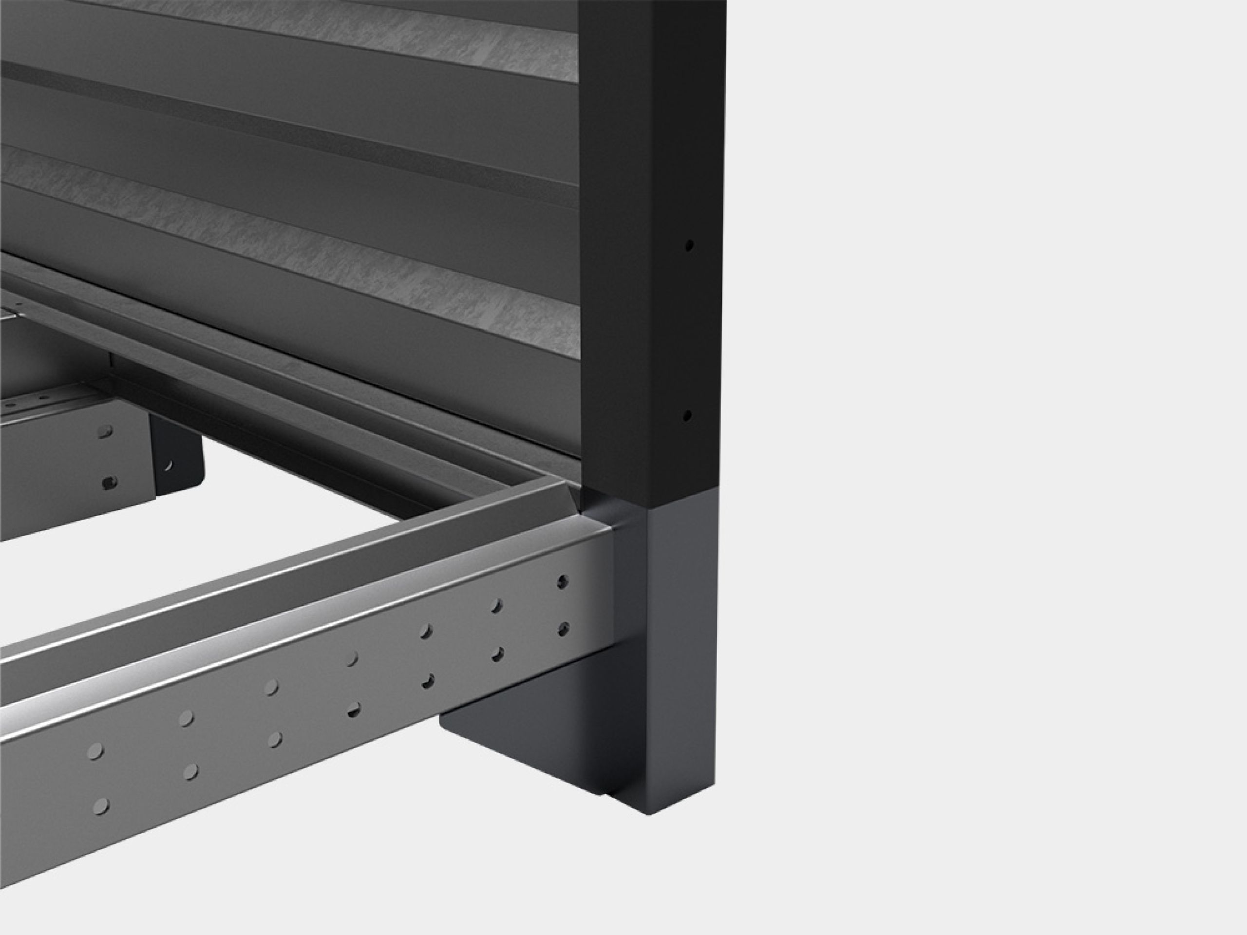 Die Rahmenprofile verfügen über Vorbohrungen für die Scharniermontage, sowie über Schlitze zur Befestigung von Lastgurten, für die einfache und schnelle Montage.